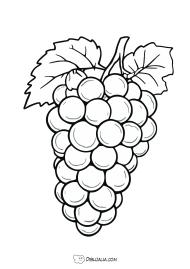 Dibujo para colorear de un racimo de uvas. Uvas ricas que puedes colorear de color verde o rojizo.