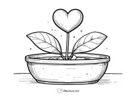 Dibujo para colorear de una planta con un corazón lleno de amor ideal para el día de los enamorados.
