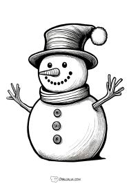 Dibujo para colorear de un muñeco de nieve, es invierno y llega la navidad.