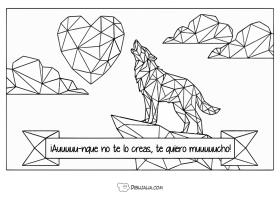 Postal o dibujo para colorear para regalar en el dia de los enamorados de un lobo aullando al amor.