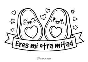 Postal de dos aguacates enamorados. Postal eres mi otra mitad. una ilustración ideal para decorar tus proyectos del día de los enamorados.
