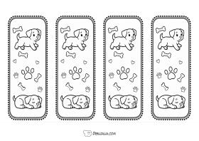Manualidades de divertidos marcapáginas de perritos para recortar y colorear. Ideales para el día del libro y dedicar a nuestras mascotas favoritas.