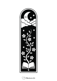 Plantilla de marcapáginas para colorear con el fondo de noche. Ideal para tus manualidades del día del libro.
